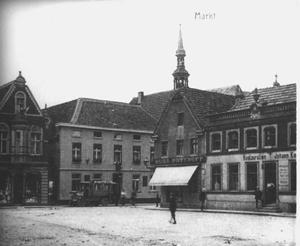 1427 - An der Nordwest-Ecke des Marktes steht das Steinerne Haus, das Rathaus der Stadt. Das mehr als 100 Jahre alte Fotozeigt das frühere Hotel König (Schwarzer Adler). „In diesem Gebäude", so Dr. Butzert, „war bis 1797 das erste Rathaus der Stadt Dorsten".